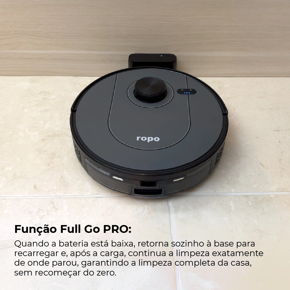 O ROPO SENSE é tão silencioso (comprovado pelo nota máxima no selo INMETRO, operando abaixo de 60 dB) que você pode relaxar, trabalhar ou assistir TV enquanto ele limpa discretamente.